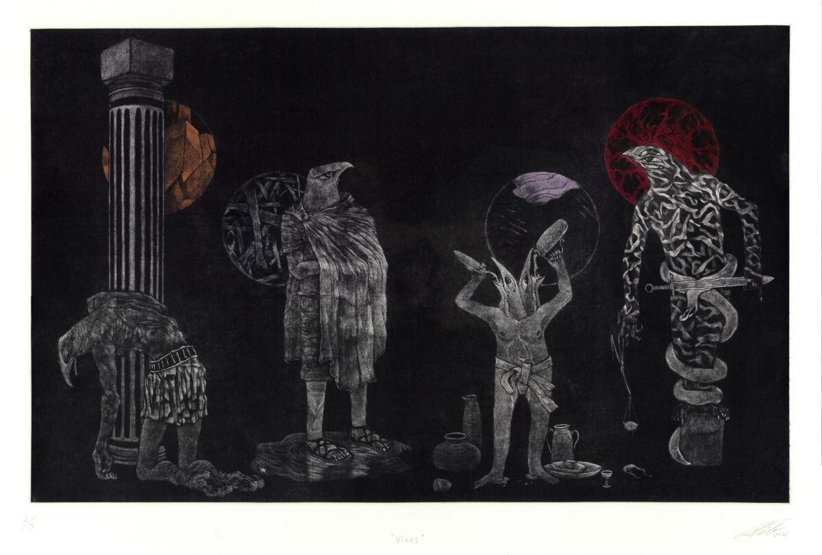 技法:メゾチント / 手彩色